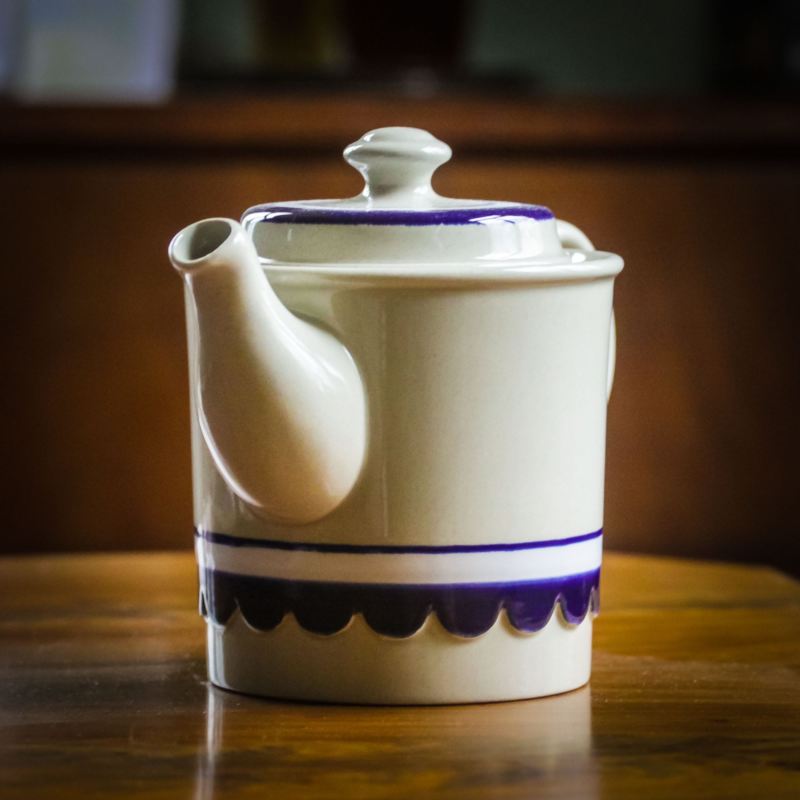 Tekannan i stengods är tillverkad av Höganäs keramik under tidigt 1970-tal, formgivare är Ann Jansson.